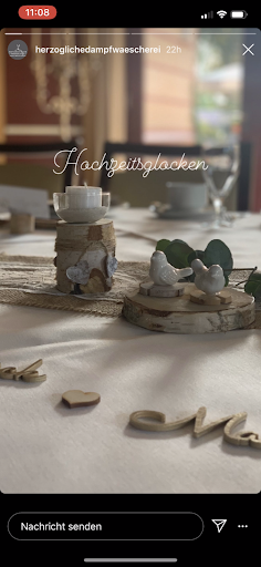 Bei Instagram wurde unsere Tafel an dem Tag auf der restauranteigenen Seite in der Story gepostet, sowie eine Woche später nochmal. Es ist natürlich in Ordnung damit zu werben. Wünschenswert wäre gewesen, persönlich um Erlaubnis zu bitten, da die komplette Tafel, sowie die Räumlichkeit in Eigenregie unserer Freundin dekoriert wurde! Teller, Gläser und Besteck gehört für mich nicht dazu. Selbst die Torten, die von der Konditorei Hünemörder in Neukloster stammen, wurden als Werbematerial verwendet ohne die Konditorei zu verlinken bzw. namentlich zu erwähnen (Info an Instagram erfolgt noch). Persönliche Glückwünsche wurden auf einer standardisierten Karte ausgesprochen. Letztendlich muss es jeder selber wissen, aber wenn man Gäste für solch eine Feierlichkeit für ca. zehn Stunden in seinem Restaurant hat und selber anwesend ist (wir haben die Inhaberin gesehen), gebietet es die Höflichkeit und Professionalität, einmal kurz reinzuschauen.