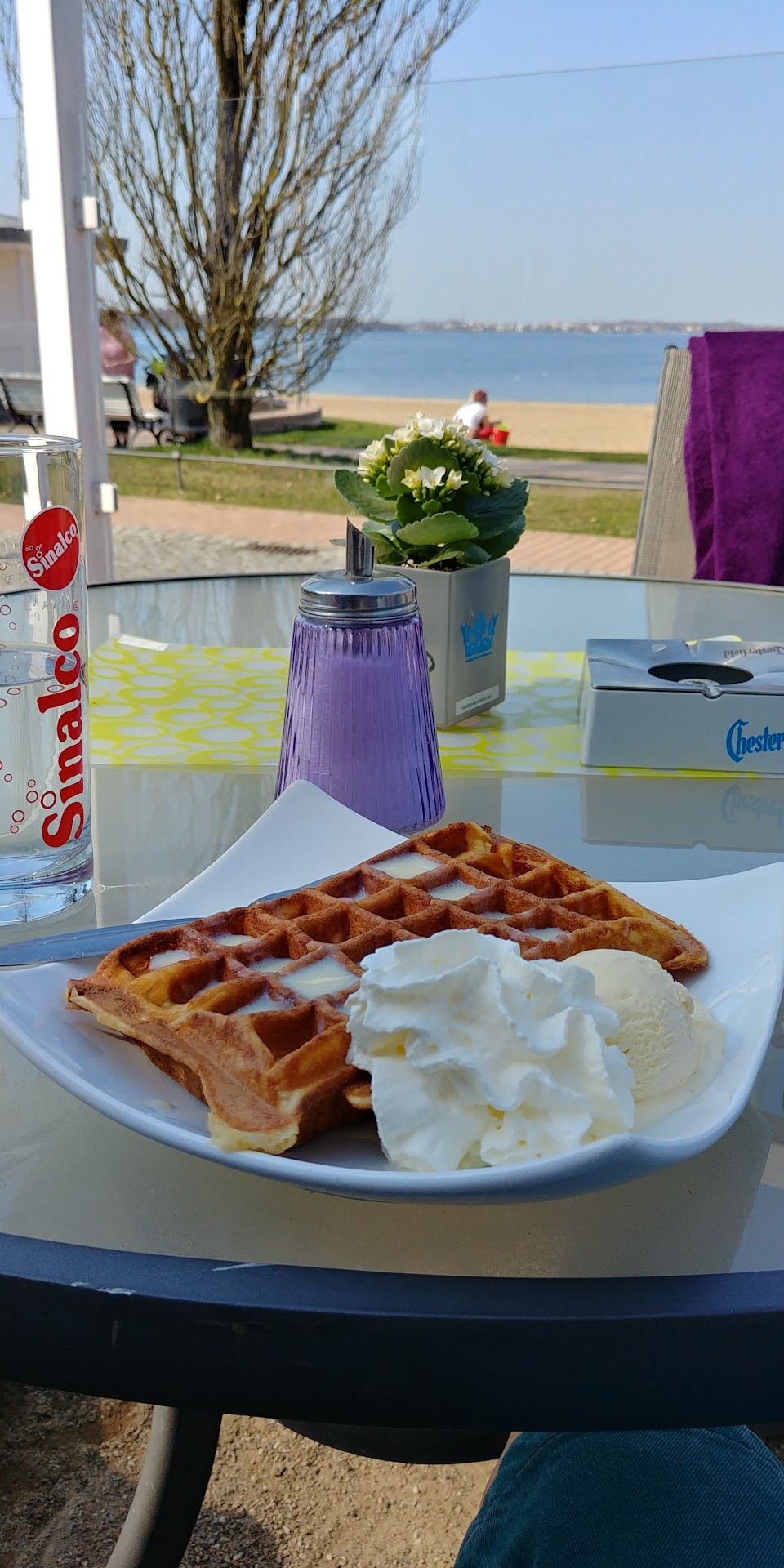 Read moreIch war mit meinem Mann in der Strandperle um die berühmten belgischen Waffeln zu essen. Klasse waren die👌!!! Es wird in der Witschaft auf Sauberkeit geachtet und das Personal ist zuvorkommend und sehr nett. Wir kamen mit dem Betreibern der Strandperle ins Gespräch und es stellte sich heraus, dass sie nicht nur leckeres Essen und Getränke haben, sondern auch ganz tolle Produkte aus dem Bereich der natürlichen Körperpflege vertreiben. Zahnpulver, welches die Zähne schonend reinigt....einfach ein tolles Produkt und alles in Eigenherstellung. Das Zahnpulver scheint ein Zaubermittel zu sein, denn meine Zähne sind nach dem Putzen richtig schön glatt. Für meinen Mann gab es selbst hergestellte Spiritosen, denn Schönheit kommt auch von innen😅. Kurz um.....es war ein unvergesslicher Besuch in der Strandperle und ich möchte mich auf diesem Weg recht herzlich für den tollen Nachmittag bei Euch bedanken. Ihr seid Klasse und....bis zum...