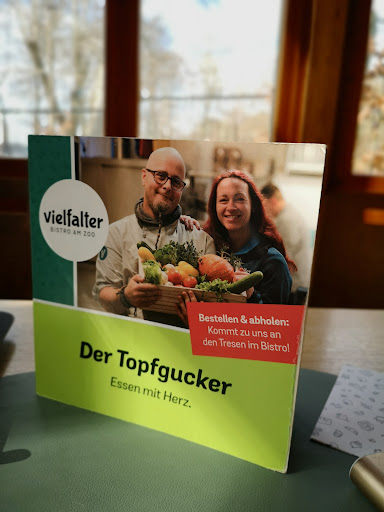 Read moreWir waren heute in dem Zoo und hatten nach fast 3 Stunden fahrt auch mal hunger gehabt und entdeckten den Vielfalter. Von außen sah es gut und ansprechend aus. Der Blick in die Speisekarte war erst sehr vielversprechend. Daraufhin hatten wir uns den Chickenburger und den BBQ Bacon Burger mit Pommes bestellt. Der Preis 9,50€ für die Burger und noch 4,00€ extra für die Pommes „Happich“ aber egal, wir haben uns gefreut. Als das Essen fertig war hat mein Mann nach einer kleinen Schale gefragt ( essen für das baby zum umfüllen) man guckte ihn an und ging weg. War dann auch egal. Zurück zu den Burgern, ich sag mal so, noch nie so ein Burger gegessen Geschmack gleich null. Das Hähnchen Fleisch war gefühlt aufgetaut, nur kurz in den Kochtopf gepackt (ja nicht gebraten sondern gekocht), der bacon Burger, naja das Patty war einigermaßen ok aber der Rest tut mir leid für die Aussage aber wirklich eklig …. Wir haben für 2 Burger 3 Portion kleine Pommes und 2 Getränke 35€ bezahlt. Also bei aller liebe aber ich glaube nicht das man sich zusammensetzt um ansatzweise irgendwas zu besprechen. Ich komme selber aus der Gastro und habe vieles gesehen und erlebt aber sowas nicht.Meine Empfehlung macht doch mal wirklich ein Meeting und überlegt euch mal was man bei den Burgern wirklich machen kann, manche Sachen für ein schönen Burger sind wirklich simple.Das einzige positive der Herr am Bistro neben an war sehr nett und freundlich und hat uns das Gläschen fürs Baby warm gemacht. Die Kassiererin vom Vielfalter...