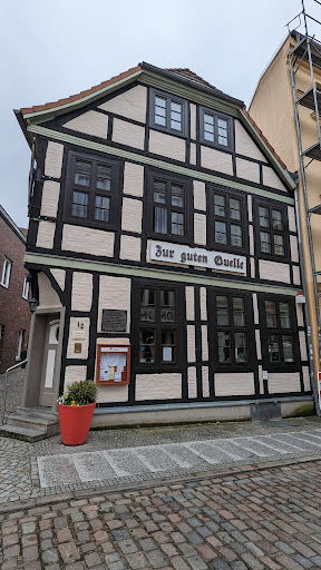Read moreKnown more for its Gasthaus (Guest House) than its restaurant and beergarten, my tour group stopped in for lunch on our day trip to the Schwerin Palace. The location was right in the center of town and the restaurant had a very authentic, almost rustic feel as it was built with dark wood throughout, and we sat at wooden benches. The proprietor barely spoke any English but was warm and friendly. They did have a menu in English which helped a lot. ||||Almost everything on the menu was made with pork, but I ordered a traditional platter of herring in cream sauce and potatoes with a beer. The herring which was garnished with red onions, apple slices, a small side salad and parsley was fresh and flavorful and the cream sauce was thick and rich. The meal was hearty and delicious and everything felt very authentic. Nothing fancy here, but the price was right and the meal...