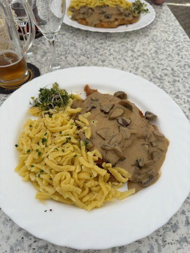 Read moreThis is a great spot with a lovely atmosphere to relax in after your Schwetzingen Schloss tour. The spargel salad was very refreshing, especially with the smoked salmon that came with it. If you want to go all out with German cuisine, the Jäger schnitzel is a fantastic choice. It comes with Spätzle, a German take on pasta that pairs perfectly with the creamy mushroom sauce on the schnitzel. For drinks, the Ritter Hell was a standout—just the right balance of sweetness and alcohol, one of the best beers...