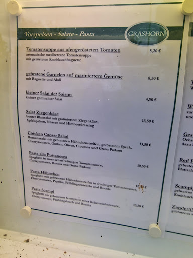 Aufgrund der guten Bewertungen sind wir (3 Erw und 1 Kind 3 Jahre) aus Berlin heute zum Essen in das Restaurant Grashorn gefahren. Wir haben lange nach einem Restaurant gesucht, und haben uns sehr auf das Essen im Grashorn gefreut. Doch, wie kommen bitte diese guten Bewertungen zustande?! Nun von vorne: Wir hatten 2 Saftschorlen bestellt, ausdrücklich mit Kohlensäure, jedoch kamen beide mit sagen, wir, sehr wenig bis gar keine Kohlensäure an, naja halb so wild. Dann haben wir uns für 3 verschiedene Gerichte entschieden: Zanderfilet, Gänsekeule und 2x Schnitzel m Pommes. Zanderfilet Meine Mutter konnte das Gericht nur mit Müh und Not halb aufessen. Ein paar kleine Kartöffelchen auf Wirsing-Matschepampe trifft es eher. Geschmacklich eher "Iglo". Gänsekeule Gericht schmeckte wie aufgewärmt. Die Klöse waren lauwarm, viel zu viel Apfelrotkohl aus dem Glas jedoch war die Gänsekeule zart, aber geschmacklich unterdurchschnittlich. Die Soße war dick und geschmacklich nicht zu erklären. Schnitzel Kind und Vater hatten paniertes Schnitzel. Vater fand es, iwie OK. Kind konnte es kaum essen weil es viel zu dick,trocken und hart war. Die Hälfte der Pommes waren oll, heißt braun. Nach dem Essen wurde uns keine Dessertkarte bzw kein Nachtisch angeboten, auch kein Espresso etc. Die Frauentoilette ist schmuddelig und riecht streng. Die Karte listet nur ganz wenige Gerichte, da hätten wir erwartet, dass zumindest frisch gekocht wird, Zeit war auch, da es früh am Abend war und nur sehr wenig Gäste im Restaurant anwesend waren. 1 Stern für die anfangs freundliche Bedienung und die Malsachen für unsere Tochter. Schade, von uns jedoch definitiv keine...
