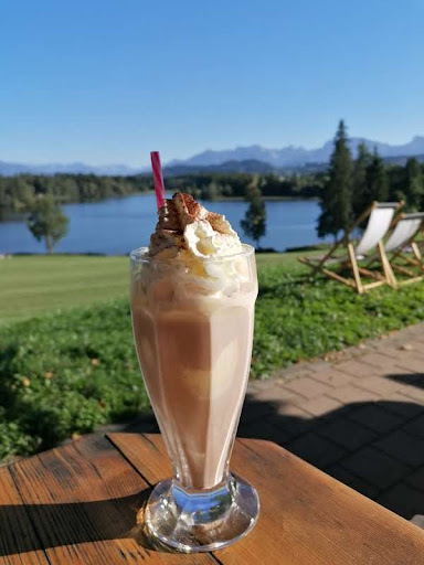 Read moreSchöner Ort zum Einkehren während der Radtour durch's Allgäuer Land. Einfache Küche (Pommes, Currywurst, Nudelsalat usw.) und Süßspeisen (Apfelstrudel, Eis) sowie Getränke. Außerdem noch selbsgebackenen Kuchen. Die Preise sind inflationsbedingt recht hoch (Paar Wienerle mit Kartoffelsalat 7,50€, eine 0,5l Flasche Limo 3,50€). Man sitzt auf Holzbänken oder -stühlen mit Auflagen. Dazu der grandiose Ausblick auf den Schwaltenweiher und die Pfrontener Berge. Es gibt Toiletten, die sehr...