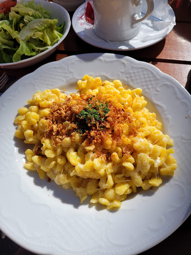 Read moreDas Essen war ganz gut, der Service ließ leider zu wünschen übrig. Zuerst schüttete man uns eine fettige heiße Suppe auf die Hose, die Kellnerin ignorierte oder bemerkte dies nicht, eine Entschuldigung gab es nicht. Die Bitterlemonschorle war verwässert und daher geschmacklos, außerdem flogen überall Wespen herum, die normales trinken erschwerten. Das essen war größtenteils gut, der Burger war allerdings zerfallen (pattie neben Burger, Brötchen daneben). Da wir für diesen Service kein Trinkgeld geben wollten und nicht mit Karte zahlen konnten, war die Kellnerin nicht mit genügend Wechselgeld ausgestattet und wir mussten mehr bezahlen, als wir wollten. Das Essen ist zwar zu empfehlen, der Service allerdings...