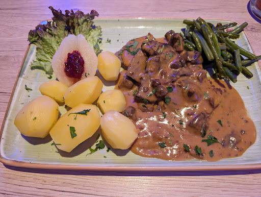 Read moreDas Essen schmeckt gut. Allerdings sind die Portionen bei dem Preis-Leistungs-Verhältnis zu knapp. Beim Hähnchenschnitzel Champignon z. B. waren gerade mal zwei Esslöffel Soße dabei und darin war 1 Pilz in 3 Scheiben geschnitten. (Kein Witz) Beim Namen "Champignon" des Gerichts, schon ein Witz. Die Bedienung hat bei vier Gerichten (je zwei Mal dieselben Gerichte) doch tatsächlich trotz aufschreiben, drei Mal das eine und einmal das andere in der Küche geordert. Durch den Salat beim einen Gericht, fiel es noch zeitig auf. Aber keine richtige Entschuldigung und später kein richtiges Danke, trotz großzügigem Trinkgeld. Und am Schlimmsten, wir hatten ein 1,5 jähriges Kleinkind dabei (war sogar bei der Reservierung mit angegeben)Es dauerte nicht lang, bis man uns spüren lies, dass schreiende, kleine Kinder hier nicht so erwünscht sind. Wir wurden auf den großen Saal oder die Kinderecke (leider vom Esstisch nicht einsehbar) vom Chef hingewiesen, mal mit dem Kind dort hin zu gehen. Damit es sich beruhigt. Kein schönes Gefühl was uns...