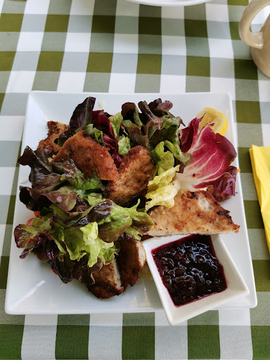 Read moreOh war das schön heute! Draussen Sonnenschein vom Feinsten und wie immer super Schnitzel Wiener Art, Krustenschweinebraten mit Kartoffelknödeln, Kartoffelsalat und einem sehr guten Beilagensalat zu beiden Essen! Als Highlight oben drauf (natürlich nacheinander 😜), herrliches Mango-Eis mit vielen Mangostücken und Soße, wie immer! Meine Freundin liebt die Eierlikör-Torte über alles. Heute war der Andrang enorm und bei diesem Traumwetter wollte jeder draussen sitzen, aber trotzdem viel Schatten haben! Das Bedienungspersonal konnte kaum durch kommen, weil die Gästeschar kein Ende nahm. Viele davon waren Radsportler. Aber plötzlich war möglich, was sonst eher selten passiert! Die Gäste rückten alle zusammen und setzten sich auch zu Fremden an den Tisch. Einfach...