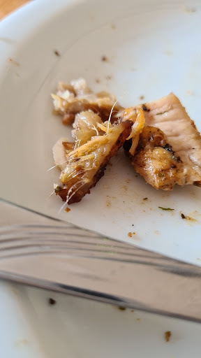 Salat akribisch und fein geschnitten. Dressing nicht zu schwer. Sehr leicht, sommerlich abgestimmt. Das Fleisch -eigene Herstellung- schmeckt lecker. Gewürzmischung auf den Punkt für Hühnchen und das Fleisch zart. Auf Wünsche wird äußerst freundlich eingegangen. Auch Erläuterungen und Hinweise zum Fleisch, etc., was zeigt das man sehr viel Wert auf seine Küche und seine Produkte legt. Man hat zusammenfassend den Eindruck das man hier beim Essen mit Liebe zum Detail arbeitet und der Kunde stets im Fokus liegt.
