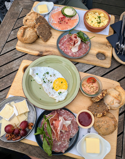 Read moreAls erstes ist mir direkt die stylische und gemütliche Einrichtung des Cafés aufgefallen. Der Raum ist durch die vielen Fenster sehr hell und es gibt viele schöne Ecken zum Sitzen - dies inkludiert sogar ein Sofa und Sessel mit Beistelltisch :) Die Frühstückskarte hat mich total fasziniert, da man sich alle verfügbaren Komponenten selber aussuchen und sein Frühstück so selbst zusammen stellen kann. Dabei gab es sehr viel leckere Auswahl, auch einige vegetarische und vegane Optionen sowie glutenfreie Brötchen. Ich als Nussallergiker konnte auch ohne Probleme die Mandeln bei dem Avocadoaufstrich weglassen und helle Brötchen bekommen. Somit ist das Frühstücksprinzip total ansprechend für Veganer, Allergiker und Picky Eater. Das gleiche gilt auch für den Kaffee - diesen kann man koffeinfrei, mit Hafer-, Soja-, oder laktosefreier Milch trinken. Ich hatte außerdem eine Holunder Limonade bestellt, die total schön angerichtet, nicht zu süß und einfach nur erfrischend und lecker war. Auch der Service hat mir sehr gut gefallen. Es haben einige junge Leute gearbeitet und bedient, die alle total freundlich und aufgeschlossen waren und meinen Fragen und Anliegen sofort entgegen gekommen sind. Die Kuchen in der Vitrine sahen ebenfalls sehr gut aus und auch die Mittagstischkarte von den Tagen zuvor klang vielversprechend. Fazit: Top Ambiente, Service und Frühstück! Definitiv einen...