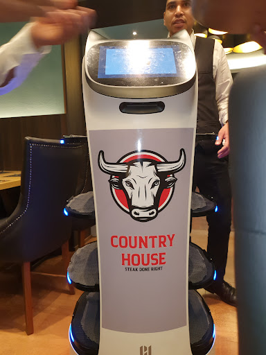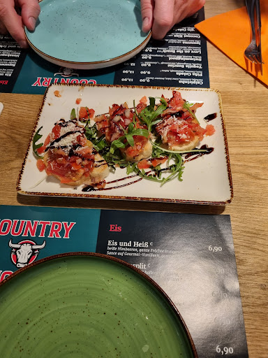 Wir waren am Samstagabend zu viert im Country House essen. Leider gibt es dort kaum Vorspeisen. Mein Mann und ich haben uns dann als Vorspeise einen gebackenen Feta geteilt. Der Feta war eindeutig ein billiges Fertigprodukt aus dem Backofen. Was allerdings noch viel ärgerlicher war, war die Tatsache, dass wir kaum Gelegenheit hatte die Vorspeise zu essen, denn als wir noch nicht einmal die Hälfte gegessen hatten, kamen schon unsere Hauptgerichte. Die Bedienung warte dann, dass wir unsere Teller mit der Vorspeise Beiseite stellen, damit sie unser Hauptspeise loswerden konnte und sagte nur „ging jetzt ein bisschen schneller als gedacht“, von Entschuldigung oder Umkehr in die Küche keine Spur. Ich hatte ein Huftsteak medium rare bestellt. Es kam ein ziemlich flaches Stück Fleisch auf einem heißen Stein, was zum Zeitpunkt des Servierens allenfalls als medium rare durchging, was auf dem heißen Stein jedoch ziemlich schnell weiter gegart ist. Hätte ich die Vorspeise zu Ende gegessen, was aus Platzgründen gar nicht möglich war, wäre das Fleisch schon völlig durch gewesen, bevor ich überhaupt angefangen hätte zu essen. Die Bedienung fragte dann, ob alles in Ordnung wäre. Ich schilderte das Problem und das auch kein Platz ist, das Fleisch vom Stein zu nehmen (hatte es inzwischen auf dem Röstbrot geparkt, um noch schlimmeres zu verhindern). Kommentar der Bedienung: ja man hätte das Fleisch wohl eher rare auf den Stein legen müssen. Das war alles, kein neues Fleisch oder wenigsten einen Teller zum Ablegen, einfach nichts! Nicht nur ein unterirdischer Service, sondern auch die Küche hat mit dieser Art des Servierens ihr ganzes Nichtkönnen offenbart, denn das Fleisch auf einem heißen Stein, insbesondere bei einem so flachem Stück wie meinem, noch weiter gart, sollte selbst jedem Anfänger klar sein. Fazit: schlechter Service, billige Fertigprodukte und von einem guten Steakhaus...