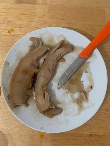 Zu guter letzt wurde mein Essen von einem Mann in Jogginghose an den Tisch gebracht. Der Mann arbeitet hier wohl in der Küche.