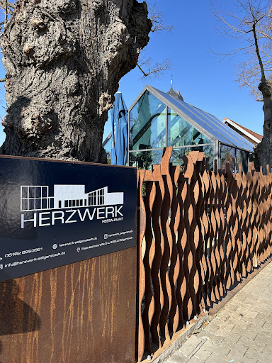 Read moreGanzheitlich einfach so richtig klasse… angefangen beim ungewöhnlichen Namen HERZWERK, der einladend dem Gast Herzliches verspricht… über das gekonnte künstlerische Aussen ( siehe Fotos ) überzeugt das atemberaubende Ambiente im Innenbereich, der in mehrere offene Räume unterteilt ist…. Wer es dann durch die ungewöhnliche „ schwere“ Tür geschafft hat, wird gleich von einer Stehauf-und Ab Pflanze begrüsst, die geduldig das Öffnen u Schliessen der Glastür mitmachen muss… ein sehr edle ebenerdige Toilette verspricht kleineren u grösseren Handicaps der Gäste sowie Mutter/Kind Bedürfnissen leicht erreichbares Ziel…. Zwei Barbereiche gibt es, einen geschlossenenen Raum und diesen atemberaubenden Wintergarten , in dem der Gast unter Hängepflanzen dinieren kann… Modern und alt beieinander … passend zum Sandsteincharakter des Bahnhofs…. hier haben sich Architekt(in?) und Innenarchitekt(in?) aufs Innovativste einlassen können…. Und ein weiteres Highlight : das ansprechende Angebot der Küchenchefs ( innen? ) Wir sind zum Buisinesslunch hier eingekehrt…. es schmeckte köstlich …. ( Ich habe absichtlich keine Teller fotografiert, bitte selber kommen u sich überzeugen ) der Service herzlich …. der Wein vorzüglich ….. Ein Restaurant zum Wiederkommen…. und Von den Gleisen gleich hinter der Sandsteinmauer ist kein Zuglärm zu hören… auch keine Autogeräusche von der nahen Strasse….. Gute Isolierung finde ich Ja und Parken klappt auch auf dem Bahnhofsparkplatz…. Gut, nicht? Ich wünsche zukünftigen Gästen die gleiche Freude die wir hatten….. und dem Gesamtteam ein grosses Dankeschön für diesen Ort, der gerade in der heutigen Zeit so umfassend...