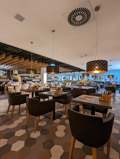 Read moreDanke für dieses kulinarische Erlebnis der Sonderklasse: das mit Abstand schlechteste Essen, das ich in meinem nun doch schon längeren Leben nach einigem Warten serviert bekam. Wollte eigentlich ein Schweineschnitzel mit Spargel - Schwein sei aus (Donnerstag 13:00!). Umbestellung: natürlich gebe es auch als Cordon Bleu nur "Hähnchenfleisch". Entschluss dann eben für Rostbraten mit Kässpätzle. Das hätte ich lassen sollen: mit Fleisch kann diese Küche wohl nichts anfangen. Serviert wurde ein Stück zähe Kuh, an den hauchdünnen Rändern schwarz verbrannt, der Mitte zu zwar schneidbar, aber geschmacklich eher an geschmorte Schuhsohle erinnernd (ich hatte ausdrücklich medium bestellt). In chaplinscher Manier konnte ich mich bei der Hälfte der Portion durcharbeiten, dann widmete ich mich lieber der feinen Maggi/Knorr-Soße mit dem Emmentaler-Spätzle-Brei. In Verbindung mit den Röstzwiebeln aus der Gefriertrocknung immerhin ein Magenfüller, von dem die Hälfte zur Sättigung mehr als reichte - für längere Zeit jedenfalls habe ich Kulinarium satt. Kein Stern - negative Sterne gibt's ja nicht. Falls die Mitarbeiter dort als Kantine essen sollten: mein tägliches Beileid - und kein Wunder, wenn man um die Mittagszeit so viele bekannte Mitarbeiter-Gesichter aus der Möbelabteilung drüben im Interni-Ristorante sieht, dass der Kunde dort keinen Platz...