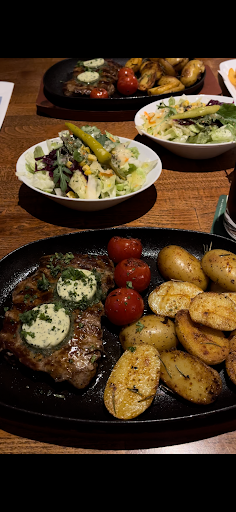 Auf dem Foto sieht man einen "Dorf-Teller". Der war völlig in Ordnung, und auch die Wartezeit auf das Essen war normal. Allerdings bekam mindestens ein Nachbartisch erst nach uns das Essen, obwohl alle vor uns im Restaurant waren.