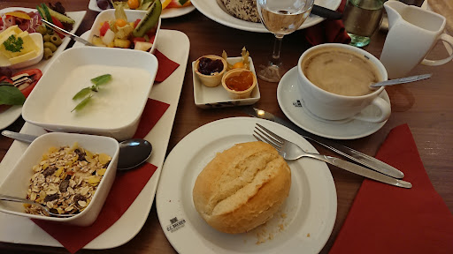 Wir nahmen Platz an einem der freien Tische , draussen vor dem Cafe, und wollten Mittagessen. Zu viert, wobei es mein Kind zum Döner vis-a-vis zog. Das wurde vom Personal im Cafe mit misstrauischem Blick bemerkt, und eine blonde Dame mit kurzem Haarschnitt kam herausgeeilt, um uns zu informieren, dass mein Kind hier am Cafe-Tisch keinen Döner verzehren dürfe. Noch bevor sie uns überhaupt begrüsste oder fragte, was wir wünschten. Für uns bereits ein irritierender und unangenehmer Auftritt des Personals. Ich teilte der Dame mit, dass wir zu dritt gerne aus der Karte des Cafes wählen würden und grossen Hunger hätten und mein Kind doch hier bei uns sitzen solle (mit seinem Döner). No way - das ginge nicht, da könne ja jeder kommen, so die Dame. Auch nachdem ich sagte, dass wir dann halt leider hier nicht essen könnten (denn schliesslich möchte ich mein Kind bei mir haben), gab es kein Einsehen. Und so zogen wir mit hungrigen Mägen wieder ab. Merkwürdige Gastkultur da in Senftenberg. Da lob ich mir andere Regionen - von denen kann sich das Kreuztor jede Menge abgucken, zum Beispiel, dass "der Ton die Musik macht" und damit bereits viel gewonnen werden kann, u.a. gegenseitiges Verständnis oder Kompromissbereitschaft, wie auch immer die aussähe. Wir werden diesen ungastlichen Ort namens Kreuztor jedenfalls nie...
