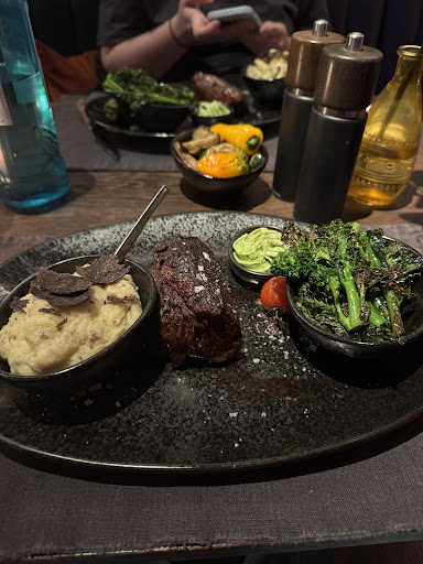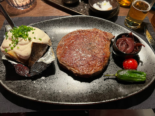 Read moreWir waren das zweite mal da und das erste was direkt ins Auge sticht ist die kleine aber feine offene küche wenn man reinkommt, es läuft sehr entspannte Musik für jeder Mann Diesmal gabs Australian Rinderfilet 200 & 300g, Beilagen waren Trüffel, Kartoffelpüree, gegrilltes Gemüse und wilder Brokkoli. Was soll ich sagen, es ist einfach genau richtig, Medium well bestellt-Medium well bekommen, sehr gut getroffen. Der Geschmack und die Qualität des Fleisches sind super! Besonders hervorheben möchte ich den wild Brokkoli, der ist so unfassbar geil 😂 normaler weise mag ich den stamm nicht, aber hier super knackig und aromatisch, super gewürzt! Ambiente ist gemütlich und nett, besonders das Fake Lager Feuer 🔥 Besonderes Augenmerk auf dem ausgezeichneten Service,10/10! Die Musik die auf angenehmer Lautstärke im Hintergrund läuft ist auch Mega entspannt Jedes mal ein toller...
