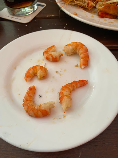 Read moreIch kann nur jedem von einem Besuch in diesem Laden abraten! Wir haben uns auf einen Gambas all u can eat Abend gefreut und wurden hier extrem enttäuscht. Angefangen bei der Qualität der Shrimps die absolut zu wünschen übrig lies bis hin zu einem respektlosen Service Mitarbeiter. Zuerst bekommt man einen Beilagensalat der aus nichts weiterem Bestand als salatblättern und einem sahneartigen Dressing im dem die Blätter versunken sind. Die Erste Portion Shrimps war von der Menge noch angemessen dafür waren der Erste Teller bereits eine geschmackliche Enttäuschung. Keinerlei Gewürze und die Shrimps waren meistens überkocht. Bei der Bestellung der dritten Runde wurde wir dann von dem Herren darauf hingewiesen das wir doch nicht so „fressen“ sollen, als wir uns nach wohlgemerkt 20 Minuten erkundigt haben wo denn die Bestellung bleibt. Es folgt eine weitere Diskussion mit dem Kellner in der er uns erklärt wird sollen doch „effizienter essen und nicht rein stopfen“. Darauf folgte dann ein weiterer netter Hinweis wir würden „die Küche belasten“. Neben uns waren ganze 5 Tische belegt, da hatte der Koch wohl nicht seinen besten Tag wenn er bei so einem geringen Aufkommen schon von den Gästen belastet ist. Die zweite Portion haben wir für einen Scherz gehalten, leider war dem nicht so und wir haben die 5 Shrimps dann einfach so in uns reingestopft (s. Foto) Nachdem uns zum 5. mal das Konzept erklärt wurde, welches die angeblich frische Zubereitung der Shrimps beinhaltet haben wir einen frischen servierten Teller kalter Shrimps erhalten nachdem wir erneut 20 Minuten gewartet haben. Ein Stern gibts für die Aioli, die geschmacklich die ungewürzten Shrimps aufgewertet hat. Als Entschädigung wurde uns 1 Kaffee angeboten (5 Personen). Hätte ich mein Geld verbrannt hätte mir die Wärme von dem Feuer mehr gebracht als ein Besuch in...