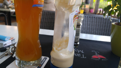 Read moreEinfachste Zubereitung von Zutaten: Salat mit 2 Gurkenscheiben und 2 Stückchen Tomaten. Der Calamaris war bestreut mit einer Gewürzmischung, dazu ein paar einfachste Pommes, 1 Eßlöffel Zaziki sowie ein Eßlöffel Reisnudeln. Das Gyros war nicht lecker, das Fleisch war hart. Auf die Frage nach Mayonnaise wurde eine Flasche siehe Bild auf den Tisch gestellt. Es wurde nicht einmal gefragt, ob es schmeckte, wahrscheinlich aus gutem Grund.... Als die Teller mit den übriggebliebenen Pommes abgeräumt wurden, sagte die Bedienung: Wunderbar! Wir waren enttäuscht und werden nicht wiederkommen! 2 Sterne , weil der Innenraum " ganz nett aussah" und Papierhandtücher auf der...