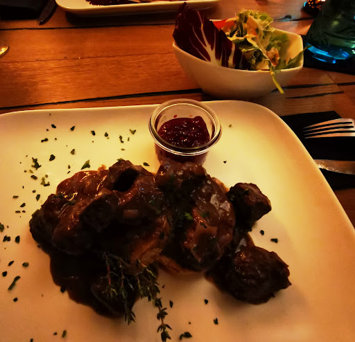 Read moreMehr Schein als Sein. Das Pfännchen hat mich nicht mal ansatzweise gesättigt. Und das für 21,50 Euro. Es war auch keine normale Portion. Teller halb leer /oder halb voll. Es hat keine 5 Minuten gedauert das Pfännchen zu verspeisen. Ich ärgere mich, dass ich kein Bild gemacht habe. Das hätte ich doch zu gern an diesen Post geheftet. Das Steak war durchgebraten, die Sauce wässrig, ganze 3 Champignons in der Champignons Sauce... generell alles sehr dünn gewürzt. Als ob man hier im "Altenheim" Speist. Getränke werden nicht nachgebracht, eine reine Katastrophe.