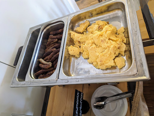 Read moreWir waren hier neulich zum ersten Mal Brunchen und uns hat es gut gefallen. Das Brunch Buffet war klein aber fein. Was wir wirklich gut fanden dass es nicht überladen war. Das Buffet wird erkennbar nachhaltig geführt was sehr zeitgemäß ist. Es wurde stets alles frisch nachgefüllt und es kamen neue Sachen hinzu so daß es sogar spannend wurde was als nächstes serviert wird. Die Mitarbeiter waren zu jeder Zeit präsent, freundlich, zuvorkommend, höflich aber nie aufdringlich. Sogar der Koch persönlich hat regelmäßig nach dem Buffet geschaut und ergänzt. Da wir privat einen hohen Wert auf die Qualität und Regionalität unserer Lebensmittel legen, fanden wir es besonders gut dass die Mitarbeiter uns über die Herkunft Information (z.Beisp. Eier, Brot, Brötchen) geben konnten. Die Qualität der Speisen war wirklich sehr gut und was der Küchenchef da gezaubert hat ist ein Träumchen, ich sage nur Browniekuchen und das Brot 😍. Was könnte dieser Zaubermeister nicht alles mit einem Dampfgarer zaubern??!! Die warmen Speisen (Schweinemedaillons (perfekt!), Kartöffelchen, Nudeln in Tomatensoße) waren in Ordnung. Wir hätten uns noch etwas Grillgemüse als Ergänzung zum warmen Buffet gewünscht. Nun den Kaffee muß ich vielleicht nicht erwähnen da ja jeder eigentlich weiß was für einen tollen Kaffee es hier gibt aber ich muss sagen der Filterkaffee der beim Brunch ausgeschenkt wurde hat mich echt aus den Socken gehauen! Ich genieße meistens eine gute Tasse Kaffee am Tag da ich Koffein nicht so gut vertrage aber von diesem Kaffee konnte ich einfach nicht genug haben. Er war wirklich sehr bekömmlich, weich, aromatisch aber überhaupt nicht aufdringlich von der Intensität. Und hinterher hatte ich überhaupt kein Herzrasen obwohl ich deutlich über mein Pensum an Kaffee konsumiert hatte😅. Nun ist die Bewertung doch etwas länger ausgefallen als ursprünglich geplant aber das musste jetzt Mal sein! Die Mühe und die Qualität sollten immer Wertgeschätzt, hoch gehalten und erwähnt werden.