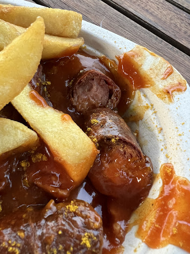 Currywurst war gerade mal lau warm. Pommes waren teilweise alles andere als knusprig.