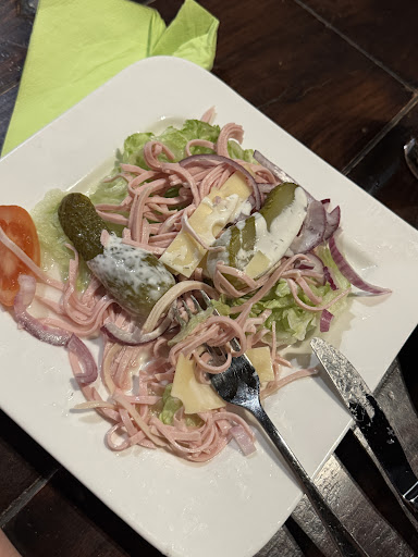 Der Schweizer Wurstsalat… wo fange ich da an… bei einem mehr als einfachen Gericht alles falsch zu machen ist schon ein Phänomen. Der Koch hat anscheinend keine Ahnung wie ein Schweizer Wurstsalat auszusehen und zu schmecken hat… dann mit 1Scheibe Schwarzbrot das wie Fischfutter schmeckte… Hier erwarte ich mindestens 2 Klein Gebäcke (Salzstange, Mohnflesserl) Essigsauer ohne Ende die Wurst war definitiv keine echte Knacker und wenn war dass keine frische, 1 Käseblatt dass in dicke Streifen geschnitten wurde.. der Rest… man siehts ja am Bild 🤦🏼♀️