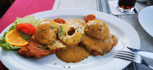 Read moreThe restaurant has a conservatory and small outside terrace with great views over the forest. Car park just outside. We had Schnitzel with various sauces. They were very good, and the meal also included soup and a decent salad bar. 65+'s can order "Senior portion"; a bit smaller for those who cannot manage the full amount. Very friendly staff and reasonable prices.. It is true that they ask bikers to remove their shoes if they want to eat here, but this is just to protect the wooden floors, as the only shoes affected are those with steel reinforcements...