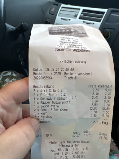 Read moreWir wurden zuerst freundlich empfangen. Nachdem wir Gerichte ausgewählt hatten und unser Kind unter anderem Soße Bernaise für ein Schnitzel bestellte, freuten wir uns auf das Essen. Die Kellnerin sagte uns, dass Soße Bernaise mit Estragon sei… Auch zwei weitere Gerichte waren mit Soße Bernaise, …die wir eigentlich sehr gerne mögen. Salat war okay, Fleisch und Beilage auch, allerdings war die oben genannte Soße ungenießbar. Sie schmeckte nur nach purem Estragon und hatte nichts von einer klassischen Soße B. Als wir die Bedienung darauf hinwiesen, bekamen wir zur Antwort: Bernaise ist immer mit Estragon ! Hab‘ ich Ihnen doch gesagt. Daraufhin ließen wir unser Essen stehen. Die Bedienung wendete sich von uns ab um ihre Kollegin hinter der Theke, sehr unfreundlich und fast schon diskriminierend über noch zu erledigende Aufgaben zu informieren. Wir hätten uns gewünscht, dass man unsere Kritik ernst genommen hätte und die extra Portion der Soße einfach nicht berechnet hätte oder vielleicht ein Espresso aufs Haus. Schade, dass man in diesem Restaurant als Gast nicht wie ein Gast...
