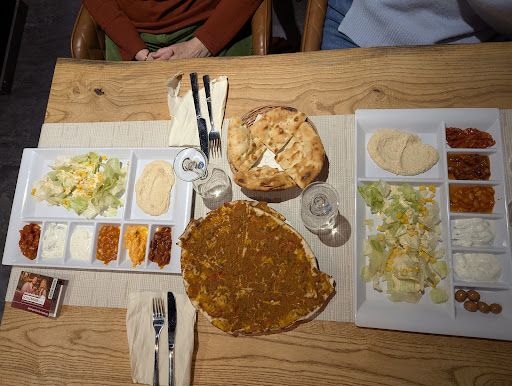 Waren zu zweit da. Zur Vorspeise wollten wir die Teigröllchen mit Käse und Petersilie. „Das kann ich Ihnen nicht empfehlen“ hieß es von der Bedienung. Weitere Erläuterungen dazu gab es nicht. Haben dann die Garnelen genommen. Die waren innerhalb von 2 Minuten auf dem Tisch. Als ob TK-Garnelen schnell frittiert worden wären. Aber sicher sagen, kann man das ja nicht. Waren eher zäh aber dafür war der Joghurtdip sehr lecker. Dazu ein frisches Fladenbrot.
