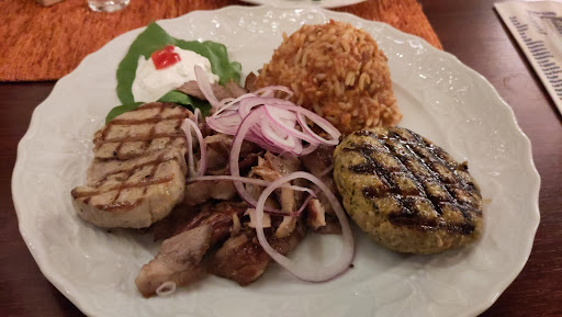 Read moreDas Service-Personal war sehr freundlich. Wir hatten vorerst die warme Vorspeisenplatte für zwei bestellt und naja, wir waren wirklich enttäuscht. Auf der Platte waren paar Scheiben frittierte Zucchini, paar Scheiben frittierte Aubergine, zwei Stücke Käse, zwei Teigtaschen und zwei gefüllte Weinblätter. Das ganze für Schlappe 20 Euro. Eigentlich soll so eine Vorspeisenplatte Lust auf mehr machen, dass hat diese Platte nicht geschafft. Zum Hauptgang gab es dann den obligatorischen Grillteller. Im Standard mit Gyros, Souvlaki, Bifteki und Lammkarree. War ok, das Bifteki war mir persönlich zu krass gewürzt (Vegeta?), Fleischgeschmack war quasi nicht vorhanden. Das Restliche Fleisch war gut. Das Gyros war wirklich lecker. Die Portionsgröße war, im Vergleich mit anderen Griechen, eher klein. Zum Hauptgang gab es noch einen Salat mit Joghurtdressing das stark an Dönersoße erinnerte inkl. dem Krautsalat den es in jedem kleinen Restaurant gibt. War absolut nicht mein Geschmack. Das Restaurant war innen ganz schön, von außen in die Jahre gekommen. Für uns war es der erste und der letzte Besuch. Es gibt einfach im Stuttgarter Raum Griechen die es um einiges Besser machen ( z.b. Cavos, Paros). Zusammengefasst: Typische Preise eines griechischen Restaurant aber Qualität würde ich eher unten ansiedeln. Die zwei Sterne gibts für den Service,...