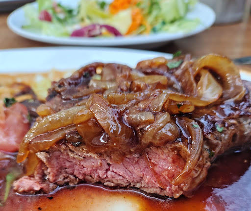 Wow. This was an absolute diamond find, from service, immaculate food quality to ambience. With all due respect we were not expecting anything sensational, but what a surprise from the moment we arrived. We ordered the Schwäbischer Zwiebelrostbraten (grilled Swabian rump steak) with spaetzle and salad. It was incredible. Fresh, grilled to perfection, juicy, tender and full of flavour - quite easily the best cut of steak i have had in a very long time. Perfect searing and level of pink for my preference, which I'm sure can be adjusted should you wish for otherwise. Thickness and marbling on-point, the source (butcher) of which also deserves a special note. Highest commendable mention for Leart and Andi, who confirmed that everything was hand made to the highest standard from scratch for this dish, from the spaetzle to the actual gravy served with it- excellently balanced and seasoned, nothing artificial. We have tried spaetzle dishes from other restaurants in the area, including the Mercure, and none come even close to these guys. We sat outside in front of the restaurant, which is nestled in a lovely tranquil forest/park on the hill overlooking Sindelfingen- brilliant ambience and fresh air. Excellent. Well done Leart and Andi, it's easy to feel the heart and soul of this place and you...
