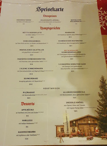 Read moreAngenehme après-ski-atmosphäre mitten im Winter und in der Weihnachtszeit Punkt die Hütte ist wirklich sehr angenehm eingerichtet und hat tolle Weihnachtsdeko. Das Essen hat mich absolut überrascht was ich nicht erwartet hätte. Es ist eine wirkliche Empfehlung. Ich habe die Schweinemedaillons gegessen mit champignonrahmsoße und Käsespätzle und sie waren einfach fantastisch. Das einzige was mich gestört hat dass das Schweinemedaillon leicht trocken war. Habe bei den Nachbarn aber auch die halbe Ente probiert und die Käsespätzle und kann alles nur empfehlen. Die Bedienung ist sehr freundlich und auch auf Zack und das ist auch gut so leider wird hier zur Weihnachtszeit eher abgeschieben Musik gespielt das Weihnachtslieder was ein bisschen ist...