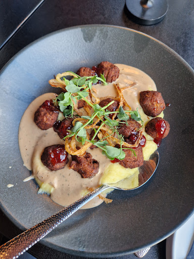 Ich selber hatte die veganen Köttbullar (siehe Bild): die vegane(!!) Rahmsoße ist der Wahnsinn, das Kartoffelpürree super lecker und das Preiselbeerchutney passt überraschend gut und rundet alles perfekt ab!