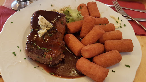 Read moreTons of seating here, mostly outdoors. We went on a busy Sunday for lunch. They only had two servers working so we had to waiz quite a while, but that seems par for the course in Germany. The poor guy was practically running trying to serve everyone. Everything on the menu looked very yummy. I have to try the steak almost wherever I go. The sauce was more tomato-ey than a normal gravy that comes with steak here, and the steak was a tad crispy on the outside which lent it a sweet/burnt taste that I don't care for but others might. The croquettes were cooked very well and soaked the gravy right up. We also ordered a pretzel to split, and it came out nice and warm which was nice with a side of butter. Altogether, very yummy and...