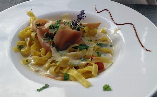Read moreWir aßen 'Bandnudeln mit Thunfisch, Kapernäpfeln, getrocknete Tomaten, Rucola und Parmesan' und eine Pizza 'Prosciutto' . Bei dem Nudelgericht war alles durcheinander gemischt, so dass der Rucola nur noch welk, schlapp und unansehnlich aus dem Gericht gezogen werden konnte - essen mochte man ihn so nicht mehr. Meine Frau sammelte ein Knäuel davon auf dem Tellerrand. Die Kapernäpfel waren auch nicht anwesend - zumindest nicht sichtbar. Auf die obligatorische Frage, ob man zufrieden war, sagte meine Frau der Chefin höflich, dass sie ein solches Gemengsel weniger schön findet und man in einem solchen Restaurant etwas anderes erwarten kann: Rucola und gehobelter Parmesan AUF den Nudeln. Außer einem 'das tut mir leid' passierte dann nichts. Auf gut Deutsch: 'mir doch egal'. Die Pizza war ganz ordentlich. Die Bedienung war absolut unprofessionell. Eine junge Frau, die offensichtlich neu und nicht eingearbeitet war. Die Grundregeln hätte man ihr schon beibringen können: Die Getränke nicht irgendwo am Rand des Tisches abstellen und den Gästen das Besteck nicht zuwerfen. Fazit: Ein, für das gebotene, viel zu teures Nudelgericht, ordentliche Pizza, Wein unter dem Eichstrich eingeschenkt, grob unprofessionelle Bedienung, gleichgültige Chefin. Wir kommen bestimmt nicht wieder und können dieses Restaurant...