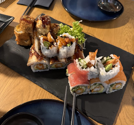 Read moreIch kann dieses Restaurant leider nicht empfehlen. Wir waren heute dort für ein spätes Mittagessen und haben Sushi, eine Suppe und ein Tatar bestellt. Die Suppe war okay, aber nichts Besonderes, das Tatar war allerdings ziemlich seltsam – es bestand aus viel Grünzeug und wenig Fisch. Trotzdem konnte man diese beiden Gerichte essen, wenn man hungrig ist und keine andere Wahl hat. Was die Sushi betrifft, waren die Dragon-Sushi schlechter als bei Edeka's Happy Sushi, und ich übertreibe nicht. Sie hatten keinen Geschmack, der Reis war seltsam, und es war schwierig, sie zu essen, ohne dass sie auseinanderfielen. Wir hatten auch eine Portion Tempura, und diese war wirklich schlecht. Der Geschmack war sehr eigenartig, nichts wie normale Tempura, wir konnten nicht einmal diese eine Portion fertig essen. Ich war schon einmal dort, als sie gerade eröffnet hatten, und mein zweiter Besuch war heute. Ich kann sagen, dass sie sich nicht verbessert haben, sondern eher das Gegenteil eingetreten ist. Die Kellnerin war freundlich und die Atmosphäre ist nett, aber das macht die niedrige Qualität des Hauptprodukts leider nicht wett. Ich bin bereit, einen höheren Preis zu zahlen, wenn das eine anständige Qualität des Essens bedeutet. Natürlich sind die Preise hier nicht hoch, aber meiner Meinung nach ist es besser, höhere Preise zu haben und dafür ein besseres Produkt zu bieten als das. Ich komme...
