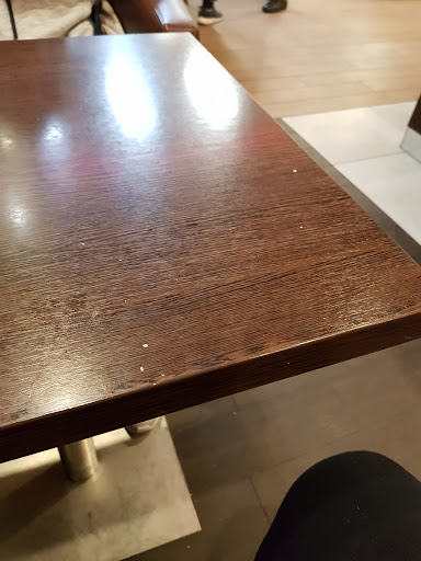 Die Hygiene ließ ebenfalls zu wünschen übrig. Es war nicht nur ein Tisch schmutzig – alle Tische waren klebrig und verdreckt. Überall lagen Tabletts mit Müll herum, die von den Mitarbeitern konsequent ignoriert wurden. Der Boden des Restaurants war ein einziges Chaos aus Dreck, Essen und gebrauchten Servietten. Selbst die Tablettenwagen waren überfüllt und wurden von den Angestellten nicht beachtet.