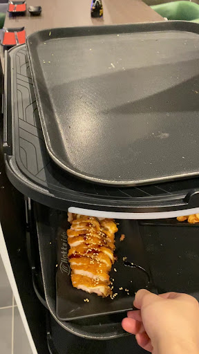Bei der Bestellung über das Tablet, welches bereits mit unzähligen verschmierten Fingerabdrücken bei uns ankam (wir waren mit die ersten Gäste an dem Tag, muss sogar noch vom Vortag gewesen sein), hat jeder Gast eine eigene Rubrik, um seine Gerichte auszuwählen. Der Witz dabei ist allerdings, dass die Unterteilung der Gäste absolut keinen Mehrwert bietet. Weder die Rechnung kann dadurch separiert werden und wird am Ende einfach zusammen gefasst, noch die gelieferten Gerichte werden getrennt gekennzeichnet (z.b. eigenes Tablett Gast 1 und Gast 2 oder andere Markierungen).