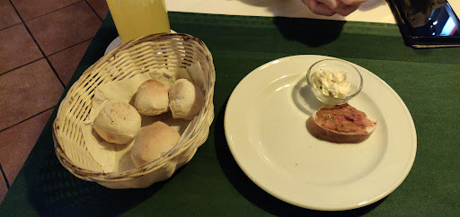 Nun wohne ich seit 23 Jahren in Ohligs und war zum ersten Mal bei Mamma Rosa. Wir hatten letztens von außen gesehen, dass es einen urigen Eindruck macht. Der Eindruck täuschte nicht: im Lokal ist es sehr gemütlich; im typischen Ristorante-Stil der 1970er, mit Nischen, bequemen Sitzmöglichkeiten (heutzutage ja eine Seltenheit), warmem Ambiente, großem Holzwagenrad als Deckenlampe, gepflegten Sanitärräumen - nice. Auch das Personal war sehr freundlich und es ging zügig voran. Als Vorspeise wurden fluffige Pizzabrötchen mit Kräuterbutter gereicht. Beides ebenfalls gut.