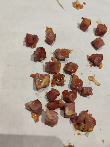 Read moreHiermit erlaube ich mir die Pizzeria zu bewerten, bei der ich regelmäßig bestellt habe. Würde man mich vor einigen Monaten fragen,wäre diese Pizzeria die beste in Solingen. Auch wenn die Bestellungen nicht immer korrekt geliefert worden sind, konnte ich dies auf Grund des sehr guten Geschmacks verzeihen. Aber leider wurde sehr nachgelassen. Angefangen vom Teig, der einem Kaugummi ähnelt oder der Tomatensauce die sauer war. Kommen wir nun zum Belag. Auf meiner Pizza waren Champignons, die ganz ok waren aber der Schinken ( wenn man es so nennen darf) war .... Ungenießbar. Wie man den Fotos entnehmen kann, waren es Würfel, die Hundefutter ähnelten. Neben dem nicht so schönen Anblick hat der Schinken sehr stark gestunken. Dies soll kein Angriff sein, lediglich ein Hinweis, dass die Qualität sehr stark nachgelassen hat. Ich hoffe sehr, dass daran gearbeitet wird und ihr zu alter Stärke...