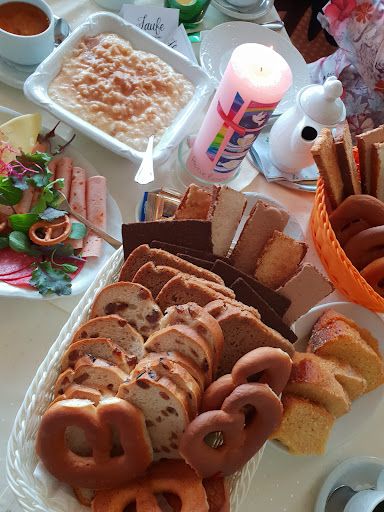 Read moreLeider wieder sehr enttäuscht. War vor ca. einem halben Jahr schon Mal ca. ne halbe Stunde vorm Ladenschluss hier. Damals wurden wir unfreundlich darauf hingewiesen das es jetzt nichts mehr zu Essen gäbe, man schließe gleich. Wir nahmen daher nur 2 Getränke. (Habe bisher gedacht, kann ja jeder Mal einen schlechten Tag haben) Heute mit meiner Freundin zur Bergischen Kaffeetafel (18.90 € pro P.) nochmals dagewesen, es verdient ja jeder eine 2te. Chance. Leider einfach nur enttäuscht und das war mein Geburtstagsgeschenk :( Das Ambiente sieht auf dem ersten Blick gut aus, urig, romantisch, aber beim genaueren hinschauen fällt einem schon auf das Alles leicht in die Jahre gekommen ist. Tische waren sauber, Stühle fleckig. Kunstblumen auf den Tischen. Da meine Freundin einen Tee hatte, war keine Dröpelminna dabei. Ich hätte mir gewünscht das grade darauf nochmal hingewiesen wird, das es dann entfällt. Bei so ziemlich jeder Nachfrage die Info zu bekommen das es ja auch so in der Karte steht, ist nicht prickelnd. Es wurde auch nicht einmal in den ca. 2 Std. gefragt ob alles ok sei oder ähnliches. Der Kaffee (Kännchen ca. 3-4 kleine Tassen)war mir zu stark und ich fragte nach heißem Wasser. Es kam eine Mini-Mini Sauciere. Ca. 2 Tassen Kaffee trank ich nicht mehr weil er mittlerweile kalt und zu stark war. Es wurde auch nicht gefragt, wie man seinen Kaffee trinkt.Milch fehlte,Kaffeesahne war dabei, Zucker fehlte. Der Tee meiner Freundin war leider auch sehr schnell kalt, aber lecker. Pro Person gab es jeweils eine Scheibe von dem Brot, Zwieback und Kuchen Sorten, siehe Bilder. Das Paderborner und der Stullen waren leicht trocken. Die Auswahl an Käse und Aufschnitt war nicht gut. Bierschinken, Pressschinken und die Salami scheinen vom nächsten Supermarkt zu kommen. Der Pumpernickel war soooo dünn, unglaublich. Die 2 Käsescheiben waren gut und scheinen regional zu sein. Die Kräuter, die 2 Salatblätter und 3 Weintrauben waren frisch. Das Paderborner scheint vom Bäcker zu sein, wird aber leider in dreckigen (zumindest von Außen, mehr konnte ich nicht sehen) Metallwannen aufbewahrt. Der Quark war ok. Der Pflaumenmus schmeckte wie aus dem Glas. Nur 2 Mini-Päckchen Butter waren dabei, auf Nachfrage bekamen wir nochmal 2. Die Waffeln mit dem Zimtreis waren ok, hauen einen aber leider nicht vom Hocker. Auch hätten wir die Waffeln gerne erst was später bekommen. Auch eine kurze Erklärung was man da jetzt alles auf dem Teller hat wäre nett gewesen. (War meine erste berg. Kaffeetafel) Das Geschirr war an vielen Stellen sehr kaputt. Alles wo man mit dem Mund dran kommt war heil. Für die harten Brezel und Zwieback Scheiben brachte man uns eine kleine Plastik Tütte zum mitnehmen. Ich habe direkt vor Ort mit der Betreiberin des Restaurants sprechen können. Hatte aber wie auch bei der Kellnerin das Gefühl das ehrlich gemeinte Kritik nicht wirklich ernst genommen wird. Sorry, man hat bei Euch das Gefühl von : " Hier Hund frisst oder stirb, aber lass...