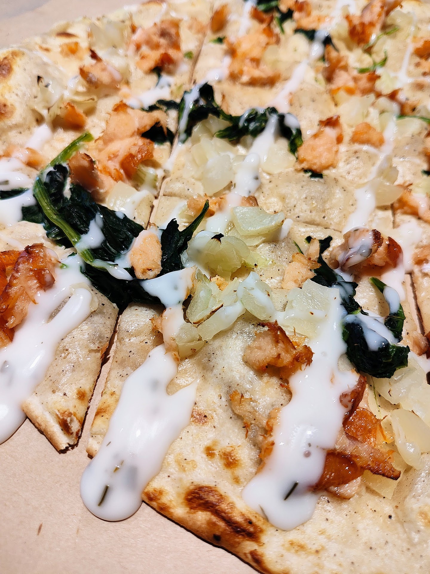 Das Essen hingegen war eher geht so, weil man auf den Flammkuchen mehr Creme raufmachen hätten sollen und der ruhig bisschen knuspriger hätte sein können. Ich hatte die Veggie Option genommen und leider war es für mich vom Geschmack...