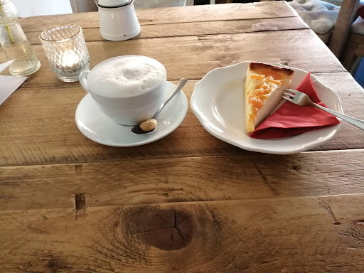 Wir waren am 12.September 2018 in diesem kleinen Restaurant. Innen und außen war es sehr ansprechend. Wir mussten ein bisschen auf die Bedienung warten (trotz wenig Kundschaft), aber das war nicht weiter tragisch. Wir haben dann neben einem Chai Latte, der gut war, zwei Flammkuchen (einmal klassisch und eine mal Feta/Peperoni)bestellt für je 8€(!). Als wir auf unser Essen warteten konnten wir sehen, wie die Bedienung zwei tiefgekühlte(!!) Flammkuchen in den Ofen schob, da wir direkt gegenüber der Küche saßen...man kann verstehen das wir da schon leicht irritiert waren weil für 8€ kann man zumindest erwarten, dass die Flammkuchen frisch belegt werden. Als der Flammkuchen dann kam war er geschmacklich wie jeder andere Tiefkühl-Flammkuchen im Sortiment jeglicher Lebensmittelgeschäfte den man für 1-3€ bekommt und außerdem sehr schnell kalt, also nicht lange genug im Ofen. Der klassische Flammkuchen war belegt wir von „Wagner“ und co. gewöhnt und der Feta/Peperoni...naja wann man die Schnipsel Peperoni nennen kann? Für mich ist es eine Frechheit einen Fertigprodukt-Flammkuchen für 8€ zu berechnen (der Einkaufspreis kann je nach Menge bei unter 2€ liegen!). Sorry aber für den Preis kann ich mir fast 2 Bleche Flammkuchen selbst machen. Neben Flammkuchen sind in dem Restaurant noch Kartoffelaufläufe (auch hier konnte meine Begleitung erspähen wie ein fertiges Produkt in den Ofen wanderte) und Suppen als warme Speisen zu haben. Keine Ahnung ob wenigstens die Suppen selbst gemacht sind, aber ich wage es mal zu bezweifeln. Sonst kann man noch Kuchen aus einer Auslage bestellen. Dieser sah sehr gut und frisch aus, allerdings hatten wir keinen daher kann ich dessen Qualität nicht beurteilen. Insgesamt würde ich von den warmen Speisen in diesem Restaurant abraten und wir werden hier auch nicht...