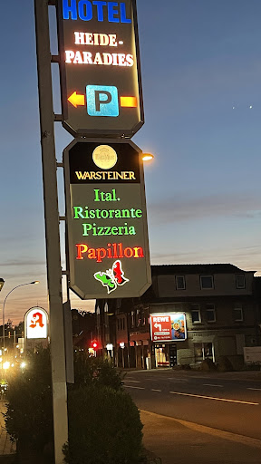 Wir sind spontan auf der Durchreise von der A7 FR Hannover abgefahren, mit dem Ziel, abends gegen 21:30 Uhr noch lecker zu essen. Mal eben rechts rangefahren und nach Lokalen gegoogelt. Anvisiert hatte ich eigentlich das Brauhaus in Soltau. Auf dem Weg dahin zufällig das Restaurant Papillon entdeckt, den Anker geworfen und eingekehrt. Platz konnten wir draußen im Hof nehmen. Eine sehr gemütliche Location und eine freundliche Bedienung lassen schon mal Vorfreude aufkommen. Bestellt hatten wir eine Margherita und ein Rumpsteak mit Champignons und Zwiebeln + Pfeffersauce. Beide Gerichte waren unfassbar lecker. Die Pizza ein Traum und das Steak auch. Hier verzeihe ich gerne, dass es einen Tacken zu rare war. Das Steak war ein riesen Klopper. Von der Pizza haben wir uns noch direkt eine zum Mitnehmen bestellt. Zum Abschluss gab es noch einen feinen Espresso und einen Absacker aufs Haus - Top!
