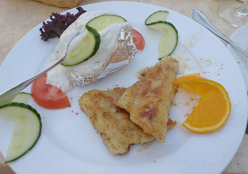 Meine Speisen: Die Dolmadaki waren außen sehr hart (die Weinblätter) und die Reisfüllung war recht sauer. Der Oktopussalat war langweilig, da ohne Sellerie, Paprika und Kräutern sowie ggf. mehr Gemüse einfach etwas fehlte. Die Lammkoteletts waren perfekt gebraten. Bei allen Gängen waren das Fladenbrot (gut!) in Verbindung mit dem "Tsatsiki" recht schwache und einzige Begleiter. Der Weißwein wurde von Karaffe zu Karaffe wärmer serviert.