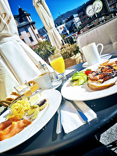 Wir waren zu dritt am 27.06.25 im Café. Es gibt eine sehr gute Parkmöglichkeit durch den großen Parkplatz. Das Café ist sozusagen von Parkplätzen umringt. Von Außen sieht das Café bereits sehr einladend aus. Es ist alles neu, sauber, gepflegt und es wurden einige Pflanzen in Übertöpfen aufgestellt. An der Seite des Cafés ist sogar eine lange und breite Rollstuhlrampe. Es gibt viele Sitzgelegenheiten im Außenbereich (Raucherbereich mit Aschenbechern) und sogar eine Schale zum trinken für mitgebrachte Fellnasen. Beim Eintreten durch den Haupteingang durchquert man einen hellen Raum mit Holztischen und Holzstülen und wird von den überaus netten Personal begrüßt. Andere Stühle und Tische im Innenbereich fände ich persönlich zwar passender, jedoch sind diese absolut ausreichend und funktional. Neben dem Gastraum gibt es noch einen separaten Raum der für Feiern genutzt und durch eine Tür vom Rest des Cafés abgetrennt werden kann. Dieser ist schön groß, hell, verfügt über 2 lange Tafeln, hat ein ansprechendes Wandbild und das Beste: die Eistheke steht genau in diesem Raum 🍨🤩 Die Speisekarte ist übersichtlich und die Speisen und Getränke haben teils lustige Namen, das hat uns gut gefallen. Die Preise sind auf normalen Niveau. Das Essen war sehr lecker und hübsch angerichtet. Der Cappuccino, Eiskaffee und Chai Latte welchen wir bestellt haben war ebenfalls sehr gut. Am besten war jedoch der Chai Latte, dieser ist sehr zu empfehlen! Das Personal ist wirklich sehr nett und aufmerksam, was ich der jungen Dame auch gesagt habe. Ich kann das Café...