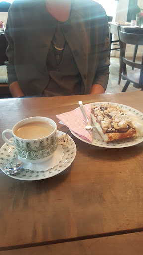 Very cozy little cafe. I loved how they modernized an older building and gave the interior such charm. They also have a lovely beer garden outside for when the weather is nice. We appreciated the vegan options they offer, but their options aren't very extensive. The cakes were tasty, but the service was lacking a bit, unfortunately. We only ordered a piece of cake and a cappuccino each, and it took a while for them to be brought out. When it was, only the cappuccinos and one piece of cake were brought....I had to wait over five minutes for the other piece of cake to be brought by another server who noticed I was...