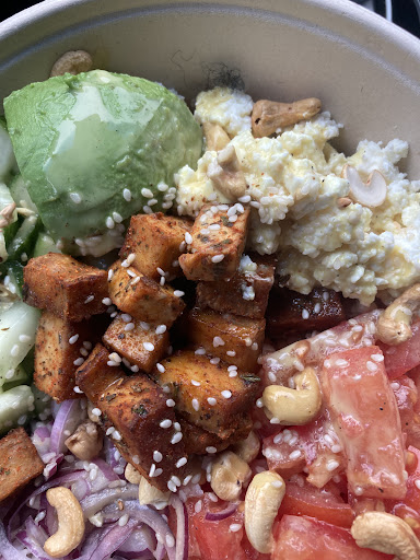 Read moreEigentlich bin ich immer gern zum Essen hier gewesen, aber heute war es vergleichsweise enttäuschend: die Preise höher, die Portionen kleiner, die Bedienung mies drauf und unmotiviert, außerdem hing ihr offener Cardigan beim Zubereiten in der Bowl (siehe Fussel auf den Fotos). Zwei der Basis-Zutaten waren nicht verfügbar aber wir flexibel… der Kollege wusste dann aber nichtmal wie man Couscous zubereitet, was nicht sehr vertrauenerweckend ist…. Alles in allem nurmehr lieblos zusammengeklatschte Standardzutaten die in zuckerhaltigem Dressing ertränkt werden. Da gibts anderswo mehr Qualität zu besserem Preis! Immerhin: nach einer Diskussion bekam die (mangels Basiszutat) kleinere Bowl...