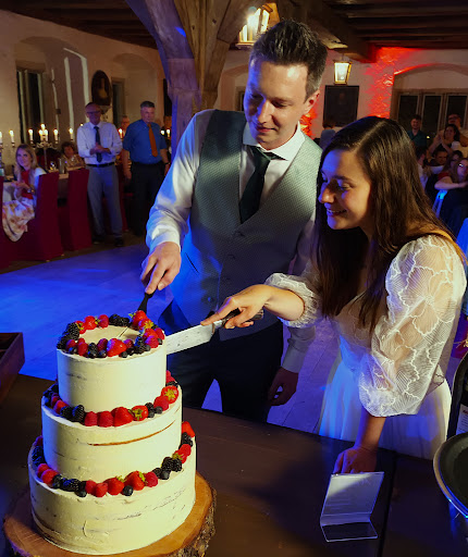 Zwei Wochen vor unserer Hochzeit in Juni 2024 hatten wir noch immer keine Konditorei gefunden, welche uns eine vegane Hochzeitstorte mit Anlieferung auf die Burg Pappenheim zaubern konnte. Dann sind wir durch eine Empfehlung auf die Bäckerei und Konditorei Menzel in Spalt aufmerksam geworden. Herr Menzel hat uns nach einem freundlichen und professionellen Beratungsgespräch unsere dreistöckige, vegane Hochzeitstorte in Naked Cake Optik in einem speziellen Kühlbehälter am Tag der Hochzeit pünktlich auf die Burg geliefert. Die Torte war köstlich und sehr schön, vielen Dank dafür!