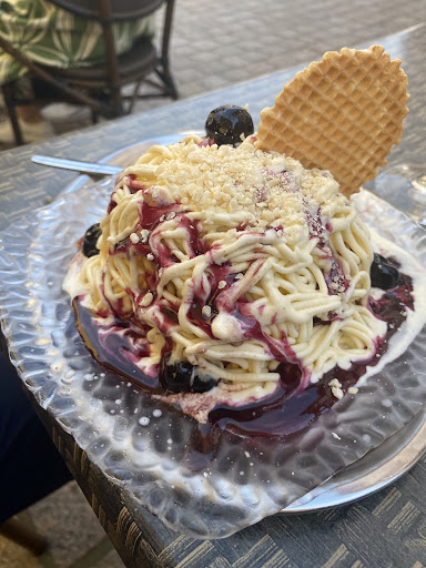 Read moreDas Eiscafe ist okay- nicht mehr und nicht weniger. Die Lage ist natürlich super. Unsere Bedienung (eine junge Frau) war sehr freundlich und ließ uns nicht lange warten. Vom Eis haben wir etwas mehr erwartet- es war lecker, keine Frage, da jedoch von einer "Eismannufaktur" gesprochen wird, war es nicht "besonders"... das Eis (Eisbecher "Malaga" und "Spaghettieis Rocher") war von der Portionierung her eher klein.