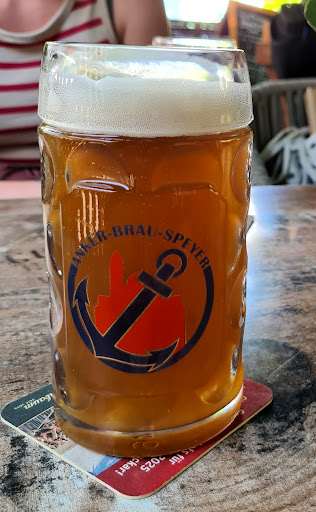Read moreImmerwieder gerne gehe ich zum Anker in Speyer. Ob im Winter oder Sommer, drinnen mit gemütlichem Brauerei Flair oder draussen zwischen dem unglaublich großen Baum im schönen Garten. Nicht nur das Ambiente macht dieses Restaurant zu dem was es für mich ist, auch das Essen spielt eine sehr große Rolle. Nirgendwo habe ich ein besseres Schnitzel, Cordon Bleu oder Rumpsteak gegessen als dort. Dazu noch ein Anker Gold Bier aus der eigenen Brauerei und der Tag ist gerettet. Sogar meine vegetarisch veranlagte Freundin kommt dort nicht um das Schnitzel rum. Die Qualität ist immer gleich und die Bedienungen sind immer auf Zack, egal wie voll dort ist. Ganz klar 5 Sterne von mir. Update: 1 Stern weniger. Der Grund dafür ist, das Jahrzente lang ausgeschenkte Anker Gold Bier. Das gibt's aktuell leider nicht mehr, zumindest nicht mehr so wie es war. Verkauft wird es weiterhin als Anker Gold, das gute selbst gebraute erfrischende und richtig goldene naturtrübe Bier, es ist allerdings meiner Meinung nach das Eichbaum naturtrübe Kellerbier was alles andere als Gold ist, es gleicht fast einem dunklen Bier. An sich garnicht so schlimm, jedoch wurde beim Nachfragen behauptet das Bierrezept wurde dauerhaft angepasst, es ist das original Anker Gold und gleich im Geschmack, was es meiner Meinung nach keineswegs ist. Nach diesem Bier wurde ich auch nicht mehr gefragt ob ich noch eins möchte obwohl wir längere Zeit gegessen haben und ein leeres Glas da stand. Deshalb leider ein Stern Abzug, sehr schade da wir seit Jahrzenten Stammgäste sind und es für uns immer etwas besonderes war, allein schon wegen dem...